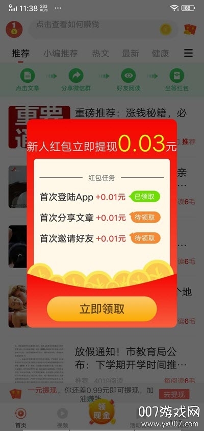 点来宝app为用户提供了一个集资讯阅读与收益获取于一体的创新平台。在这里,每天都有海量的优质文章持续更新,涵盖时事新闻、生活百科、娱乐八卦等多个领域。用户可以根据个人兴趣自由选择阅读内容,在获取知识的同时还能通过分享文章给好友来赚取收益。独特的阅读赚钱模式让用户既能享受阅读乐趣,又能获得经济回报,真正实现了一举两得。