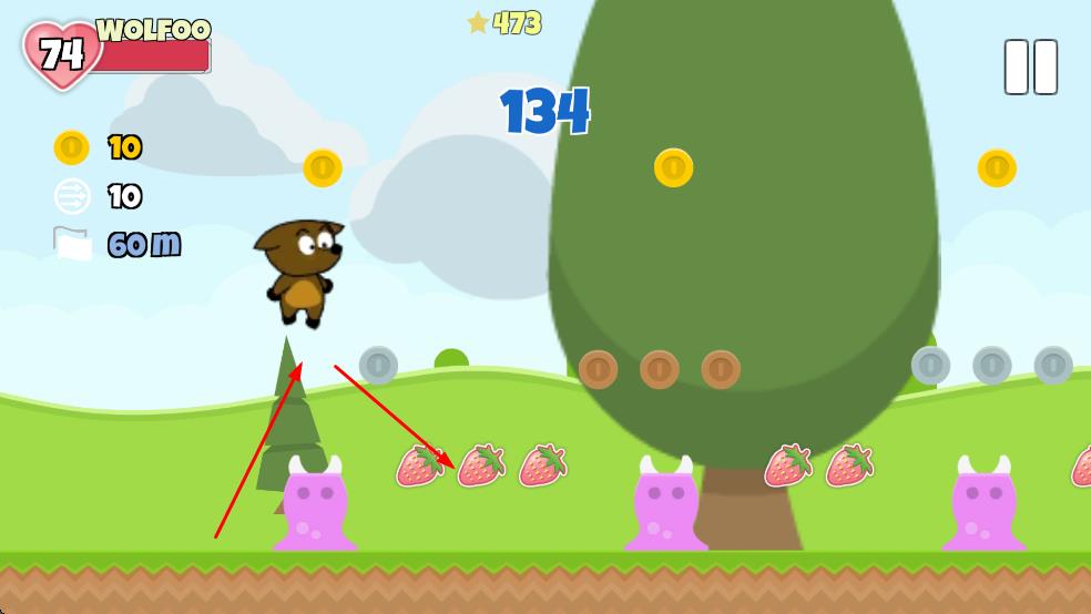 操控Wolfoo在绿意盎然的草地上尽情奔跑,优先收集鲜红诱人的草莓,这些草莓不仅能提升关卡得分进度,还能为小狗补充能量。在奔跑过程中要时刻保持警惕,遇到紫色怪物时要及时跳跃躲避,同时不要忘记收集沿途闪闪发光的金币,这些金币既能维持小狗的血量,也是积累资源的重要途径。游戏还准备了各种实用的武器道具,玩家要善于发现并拾取这些道具,为后续更具挑战性的关卡做好准备,不断推进奔跑距离,创造新的记录。
