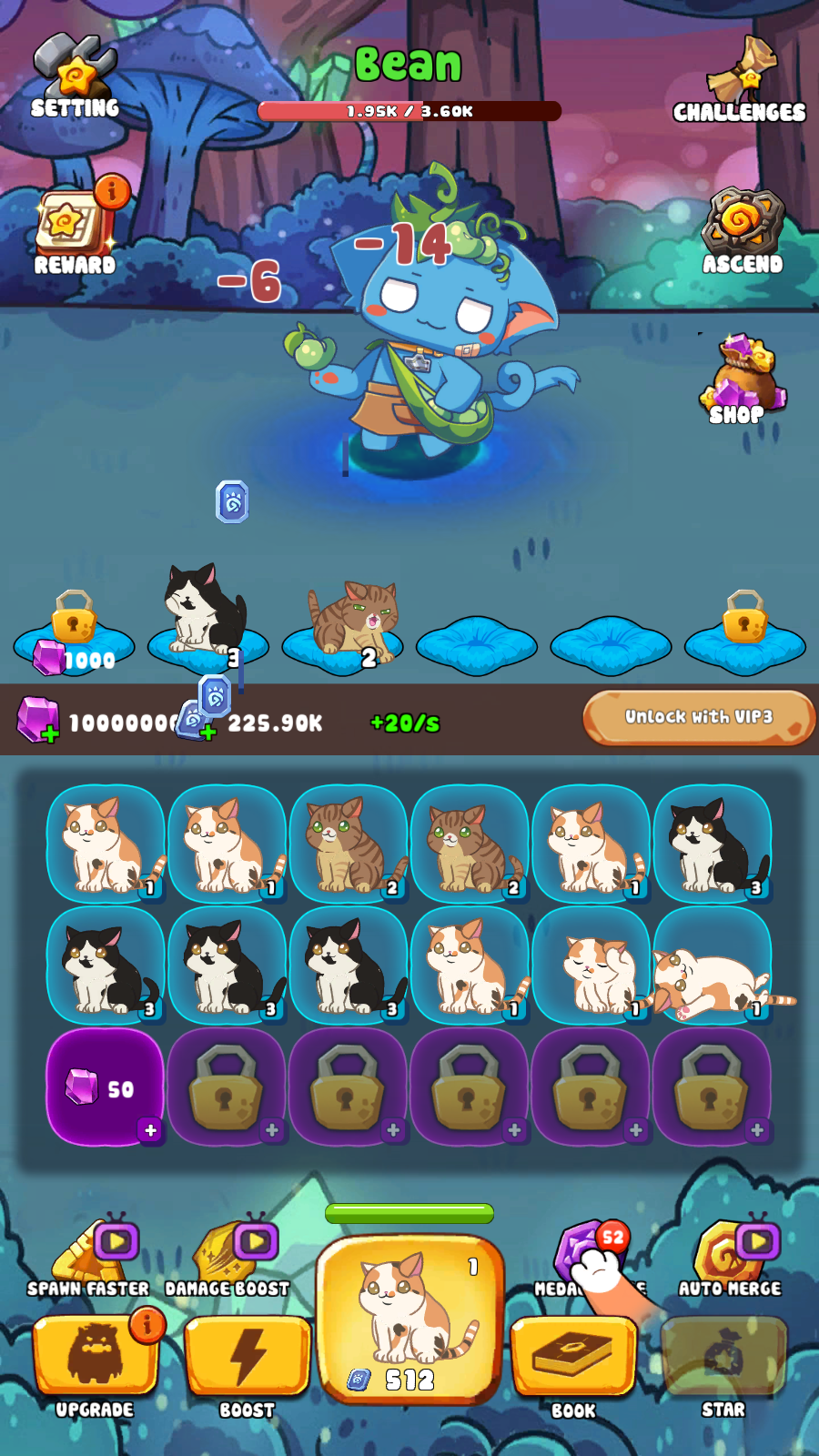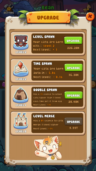 核心玩法【MEDAL-MERGE】系统允许玩家将同类猫咪进行合并进化,不仅能提升猫咪等级,还能增强其对【Bean】等特殊怪物的作战能力。合并时要注意观察猫咪的当前形态,合理安排合并顺序可以最大化收益。