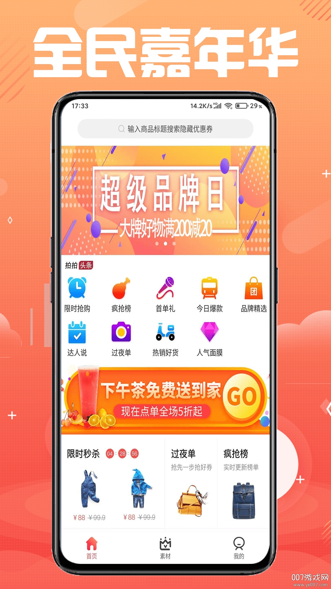 券拍拍嘉年华版是一款功能强大的综合优惠导购返佣APP,它整合了全网各大电商平台的优惠资源,为用户提供一站式的省钱购物解决方案。作为全网全品类的优惠平台,券拍拍不仅覆盖了淘宝、京东、拼多多等主流电商,还包含了餐饮、旅游、生活服务等多个消费领域。无论您是想网购商品,还是寻找线下消费优惠,券拍拍都能满足您的需求,让您随时随地享受最优惠的价格。