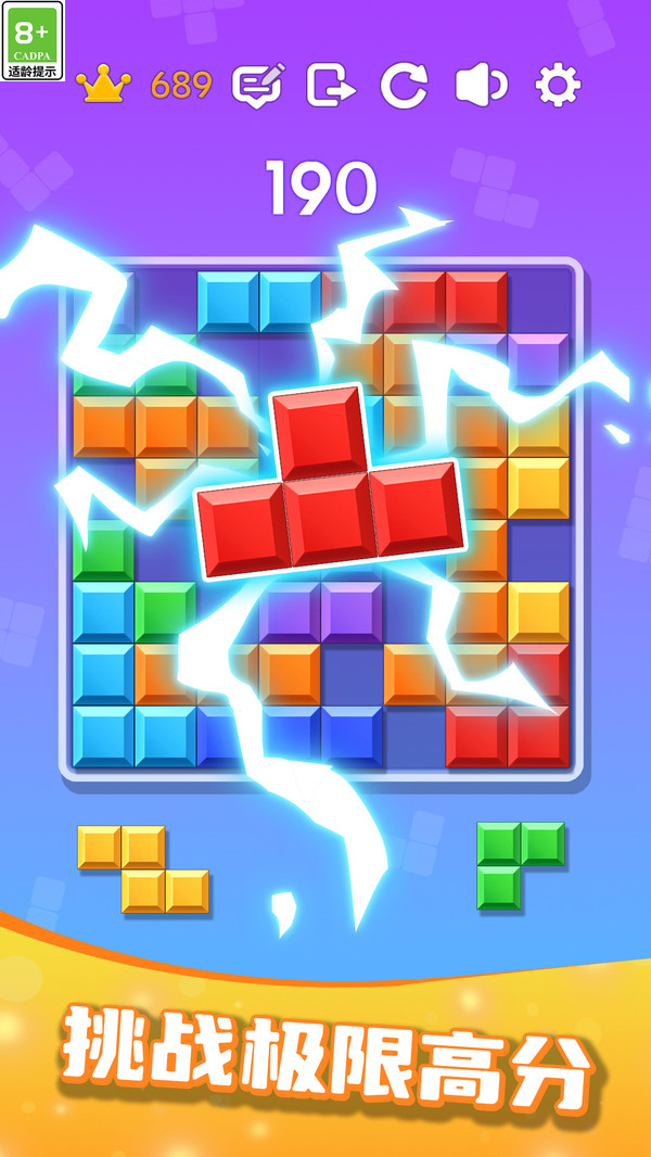 无限挑战模式:关卡模式节奏明快,每轮挑战都设计独特,让玩家时刻保持新鲜感,越玩越停不下来,随时挑战极限高分不停刷新记录。游戏每周都会推出限时挑战活动,提供专属奖励和特殊方块组合,让玩家持续保持挑战热情。
