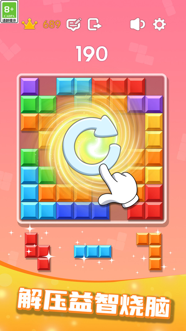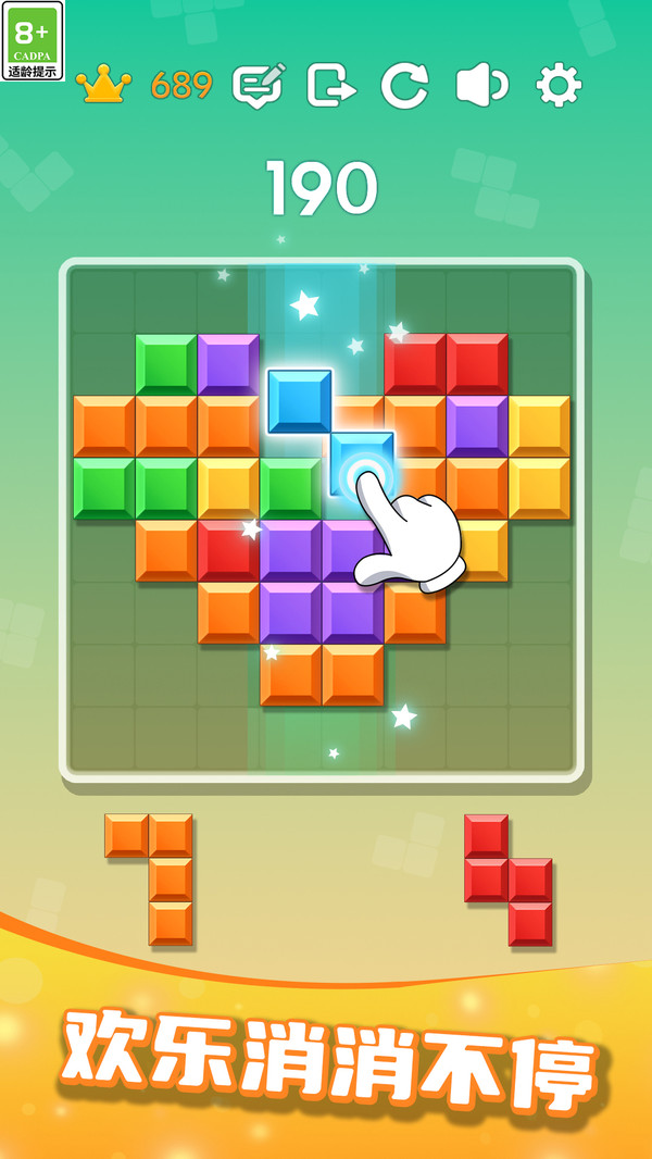 轻松音乐伴随:背景音乐悠扬动听,每一次方块消除都配有音效反馈,大大提升操作的节奏感和爽快感,玩着玩着整个人都被疗愈到了。音效团队精心设计了20多种不同情境下的音效组合,确保游戏过程中听觉体验始终丰富多变。