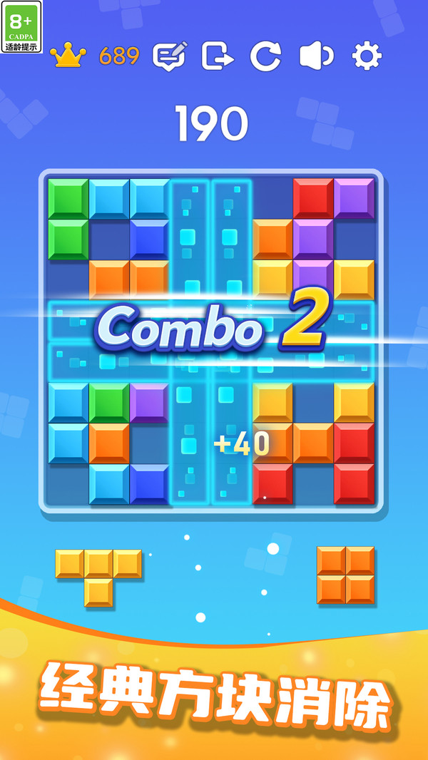 拖动方块机制:玩家需将指定方块拖动至指定区域,组合整行或整列进行消除,玩法轻松不烧脑。游戏新增了方块预览功能,可以提前查看即将出现的方块组合,帮助玩家做出更优决策。