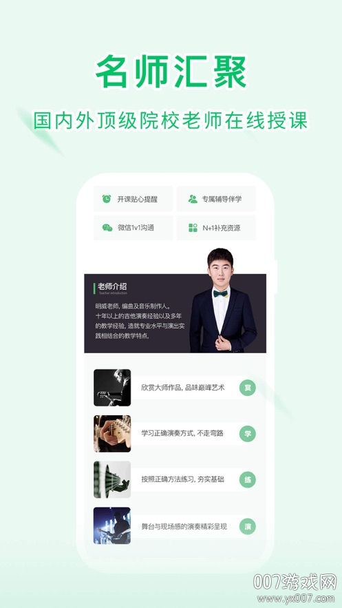 知名艺术家在线为你提供专业指导,通过一对一或小班教学模式,确保每位学员都能获得个性化辅导;平台汇集了海量的教学资源,包括视频教程、乐谱资料、练习曲目等,用户可以随时随地登录学习;及时更新艺术考试动态和行业资讯,为用户提供最新的考试大纲、备考技巧和院校招生信息,助力艺术类考生顺利通过考试。