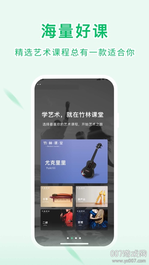 竹林课堂是一个专注于线上艺术教育的专业平台,致力于为用户提供丰富多样的艺术学习资源。平台涵盖吉他、钢琴、小提琴、二胡、中阮、竹笛等多种乐器课程,同时还包含乐理知识、流行唱法等多元化教学内容。无论你是初学者还是进阶学习者,无论处于哪个年龄阶段,竹林课堂都能为你量身定制合适的课程,帮助你在艺术道路上不断进步。通过专业的师资力量和优质的教学内容,竹林课堂已成为众多艺术爱好者的首选学习平台。