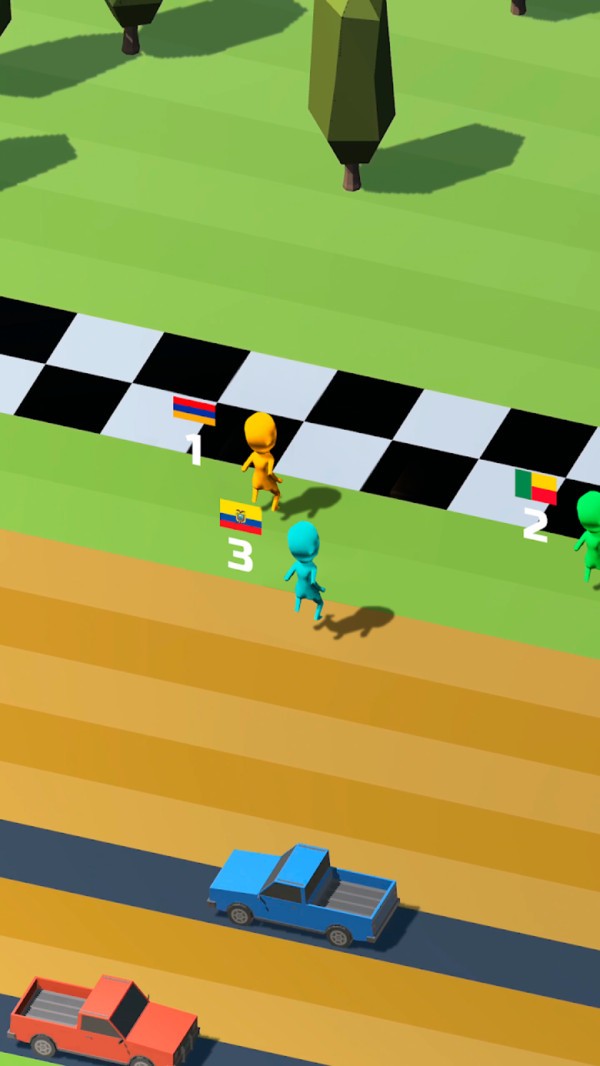 游戏采用独特的魔性画风,简约而不失趣味。你将看到各种造型可爱的火柴人角色在马路上跳跃穿梭,形成一道独特的风景线。游戏对跳跃力度的把控要求极高,玩家必须精确计算才能成功落在两个马路之间的安全区域。最令人兴奋的是,虽然车流速度会不断变化,但其中暗藏着特定的节奏规律,找到并掌握这个节奏是制胜的关键。