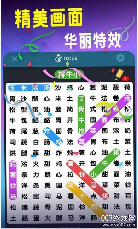 游戏想象的更多的隐藏成语和词汇,关卡往后隐藏的成语越来越多。特别设计的"成语探秘"模式,让玩家在解谜过程中发现成语背后的历史故事和文化内涵。