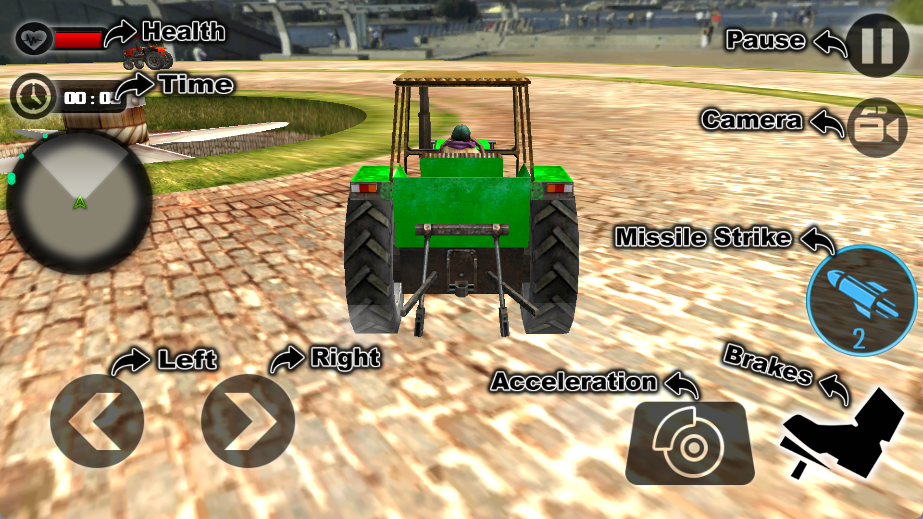 进入游戏后使用直观的按键操作控制拖拉机,通过方向键控制移动,特殊按键触发加速和特殊技能。进入对战场景后,需要巧妙驾驶拖拉机主动撞击对手,同时注意利用地形优势,如斜坡、障碍物等来增强撞击力度。在"拆迁德比"模式中,玩家需要持续对抗多个对手,通过精准的撞击和灵活的走位,在规定时间内保持车辆运转并成为最后的幸存者。游戏还设有多种特殊道具和技能,合理使用可以扭转战局。