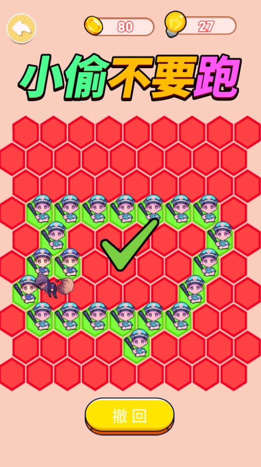 《警察围堵小偷》是一款极具策略性的益智游戏,玩家将化身正义的警察,在错综复杂的六边形地图中展开一场智慧与速度的较量。游戏通过精巧的空间布局设计,要求玩家合理调配警力资源,在有限步数内完成对小偷的全面封锁。独特的网格移动机制让每一步都充满变数,玩家需要预判小偷的逃跑路线,同时灵活运用各类警种的特殊能力。随着关卡推进,地形复杂度和小偷AI智能度逐步提升,从简单的巷道追逐到立体的多层空间围捕,不断考验玩家的空间想象力和即时决策能力。游戏完美融合了战术规划与快速反应,带来紧张刺激的脑力挑战体验。
