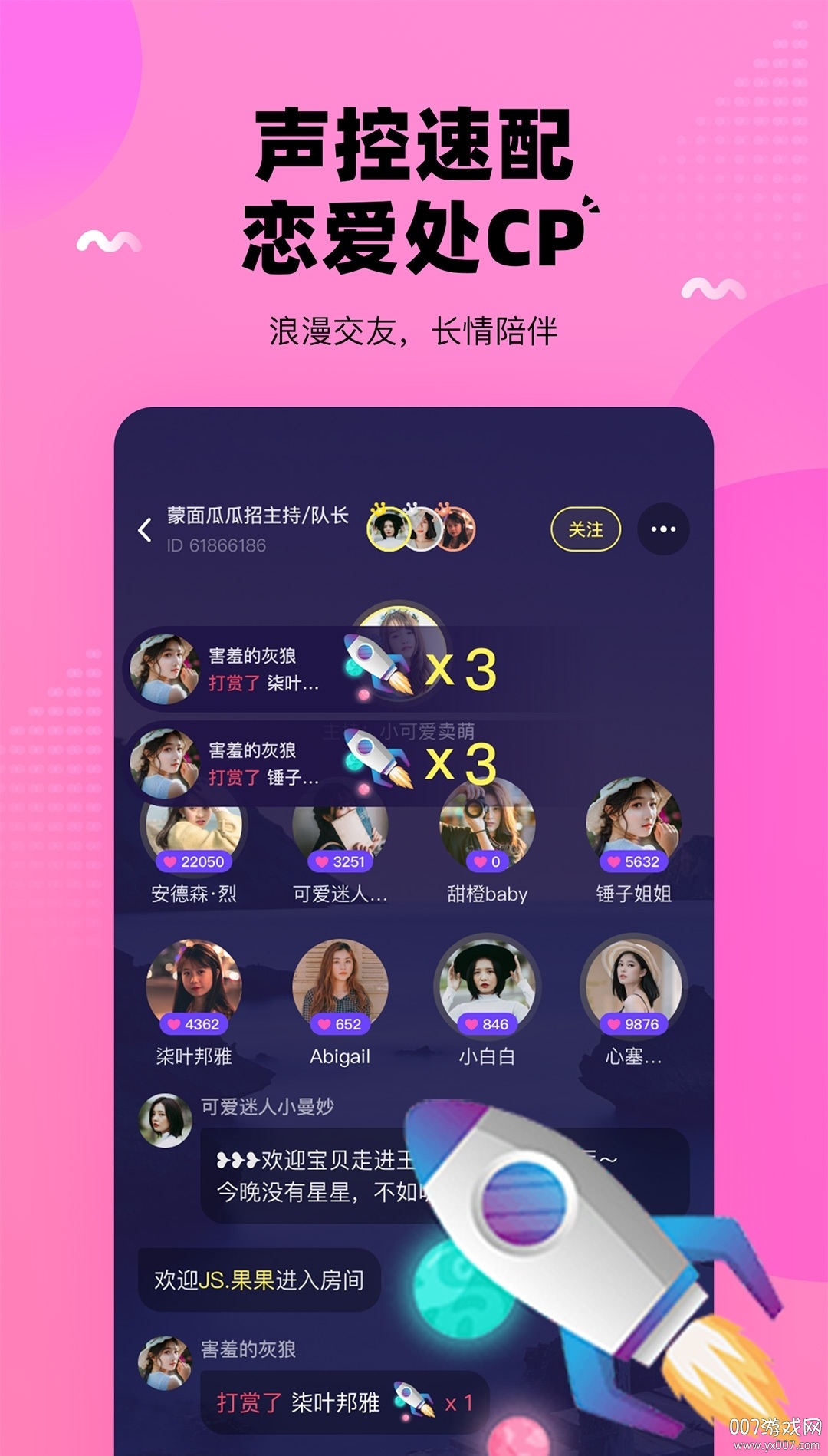 这是一款集游戏陪玩与社交于一体的创新平台:你可以组队开黑,让大神带你飞;寻找可盐可甜的游戏玩伴;在语音聊天室唱歌交友;通过声控速配功能寻找游戏CP;还能加入大神招募计划,边打游戏边赚钱。