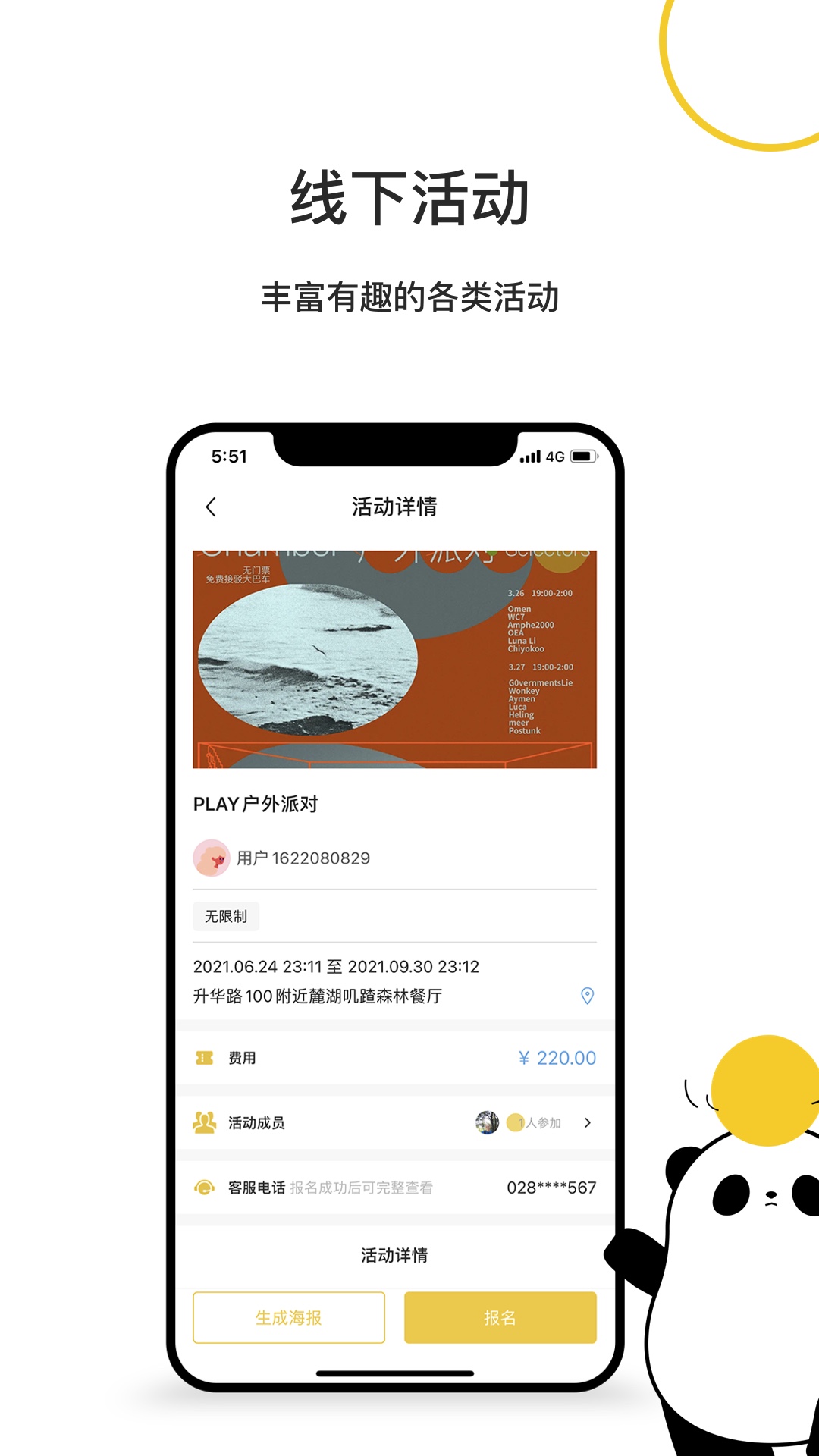举办丰富有趣的活动,让用户在附近找到大量志同道合的朋友,活动信息会提前推送,用户可以根据兴趣和时间自由选择参与;