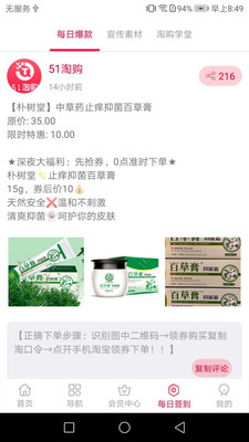 51淘购app不仅是一个购物平台,更是一个创新的分享导购平台。它通过加入CPS联盟,将主流电商平台的高佣金热销商品分享给用户。用户不仅可以领取商品优惠券,还能获得商品返利,实现真正的省钱购物。这种创新的购物模式,让用户在享受优惠的同时,还能通过分享赚取额外收益。