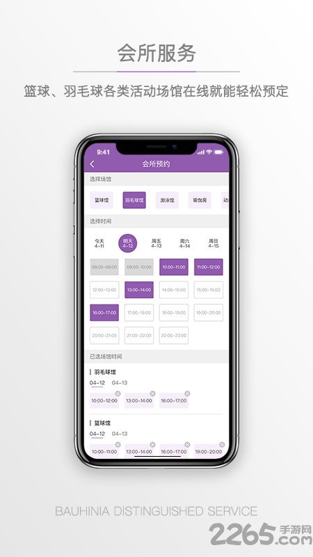 会所服务:篮球、羽毛球等活动场馆在线就能轻松预定;支持实时查看场地使用情况,预约成功后自动生成电子凭证;
