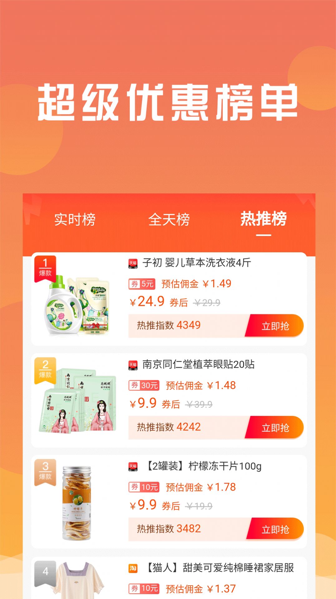 平台实时更新上万款优质商品优惠券,每分钟都有新鲜好券上线,涵盖1元包邮、大额满减等多种类型,满足不同消费需求。下单即可获得返利,最高返利比例可达90%,让您买的每一件商品都能获得实实在在的优惠。