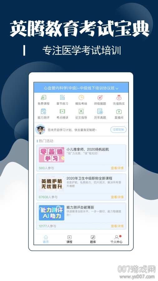 本应用深度剖析临床典型案例,精准把握考试命题趋势,提供考点详解与应试技巧。平台特邀三甲医院临床经验丰富的主任医师组成教学团队,通过视频课程、直播讲解、在线答疑等多种形式,为考生提供全方位的备考支持。英腾教育中心全程提供专业教学服务,从基础巩固到冲刺提分,系统性地帮助医学工作者完成卫生中级职称晋升考试准备。