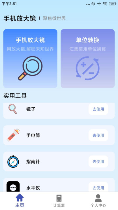 使用放大镜多倍版app非常简单方便。首先需要下载并安装最新版本的应用,初次使用时需要授予必要的权限。进入应用首页后,可以看到清晰直观的功能界面,点击【手机放大镜】功能即可开始使用。在使用过程中,用户可以通过直观的手势操作来调整放大倍数,满足不同场景下的观察需求。整个操作流程设计得非常人性化,即使是初次使用的用户也能快速上手。