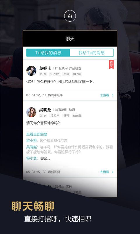 平台提供即时通讯功能,您可以随时与感兴趣的人展开对话,分享生活点滴。通过查看其他用户的个人相册,您可以更全面地了解对方的兴趣爱好和生活方式。我们还提供个性化推荐服务,根据您的偏好为您匹配最合适的交友对象。