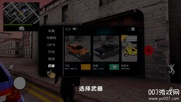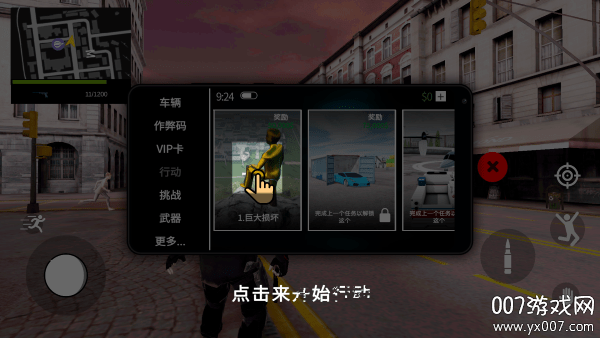 游戏开始时,玩家将置身于一个精心设计的开放世界地图中,可以自由探索各个区域。通过直观的虚拟摇杆控制系统,玩家可以精准操控角色移动,同时通过滑动屏幕来调整视角,全方位观察周围环境。在游戏初期,玩家需要按照指引前往武器商店购置装备,通过点击右下角的交互按钮即可拾取武器道具。完成基础准备后,玩家可以通过手机接收各种任务,从简单的摧毁目标到复杂的抢劫行动,每个任务都充满挑战性。