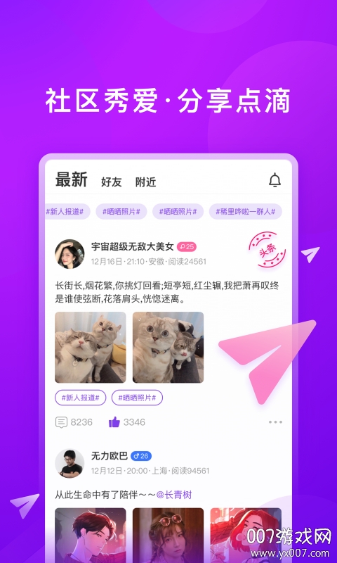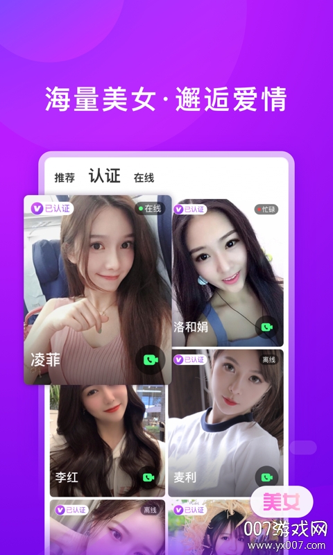对相app浪漫版是一款专为单身人士打造的社交恋爱软件,致力于为用户提供真实、高效、有趣的交友体验。在这里,单身男性可以邂逅海量优质女性用户,开启一段浪漫的甜蜜恋情。平台采用严格的真人认证机制,确保每位用户的资料真实可靠,让您能够放心交友。无论是想要寻找真爱,还是期待一段美好的邂逅,对相app浪漫版都能满足您的需求。