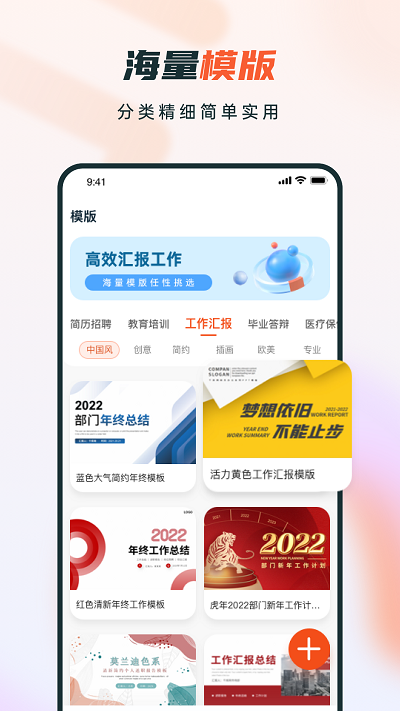 海量模板:软件持续更新各类PPT模板,涵盖商务、教育、创意等多个领域,满足不同场景的使用需求。无论是校园比赛、工作报告还是产品展示,都能找到合适的模板,让您的PPT脱颖而出。
