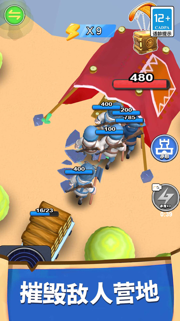 我的军团超猛是一款极具策略性和操作性的军团题材游戏。在游戏中,玩家将扮演一位军团指挥官,率领自己的部队在广阔的战场上自由移动,穿梭于森林、平原等多种地形之间。游戏不仅需要玩家砍伐树木获取资源,更重要的是要招募不同特性的兵种,精心搭配出专属的战斗阵容。玩家需要在瞬息万变的战场上快速做出决策,灵活运用各种兵种的特性和技能,才能在激烈的战斗中取得最终胜利。这种快节奏的玩法让玩家充分感受到战斗的刺激与乐趣。同时,游戏还设计了丰富的成就系统和奖励机制,玩家在完成各种挑战任务后可以获得丰厚的奖励,这些奖励将帮助玩家进一步提升军团的整体实力。