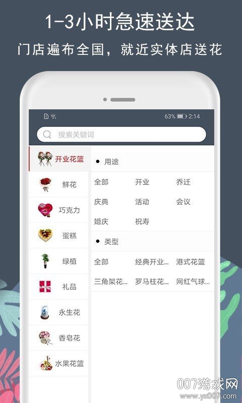 一键下单,同城鲜花最快一小时内送达,让您的惊喜不迟到。支持收藏喜欢的鲜花店铺,方便您随时找到心仪的花店。提供时尚前卫、经典优雅等多种风格的鲜花任选,满足不同场合和品味的需要。贴心的生日、纪念日提醒功能,让您永远不会错过重要时刻。特别推出的七夕专题活动,更有专属定制花束和优惠活动等您来发现。