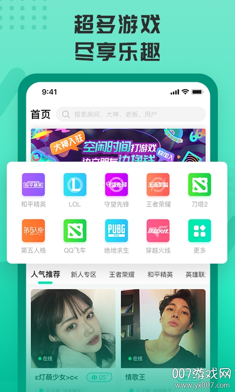 尽情展示自我,认识她他ta;完善的个人信息展示功能,可以展示游戏战绩、擅长英雄、声音样本等内容。支持点赞、关注和私信互动,让有趣的灵魂更容易相遇。