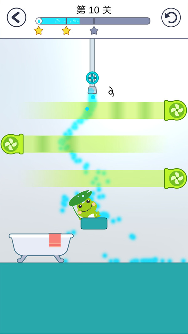 游戏拥有简洁大方的视觉设计,操作界面直观易懂,玩家只需轻点屏幕就能控制水流释放。精心设计的海量特色关卡带来持续的新鲜感,每个关卡都经过巧妙构思,难度曲线合理,让玩家能够轻松上手又充满挑战。游戏还融入了温馨的SPA主题,看着小青蛙享受舒适的水疗时光,让人感到格外治愈。此外,游戏还设置了多种互动元素和隐藏彩蛋,等待玩家去探索发现。