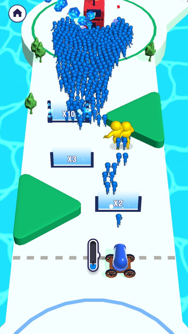 游戏的核心玩法围绕着精准射击和策略指挥展开。玩家需要熟练操控火柴人发射装置,准确命中战场上的倍增大门,这样才能快速增加己方火柴人的数量。在队伍规模扩大后,玩家需要审时度势,指挥火柴人军团向敌方阵地发起冲锋。游戏设置了丰富多样的关卡场景,每个场景都有独特的敌人布局和地形特点,玩家需要根据实际情况寻找最佳的射击时机和进攻路线,才能克敌制胜。