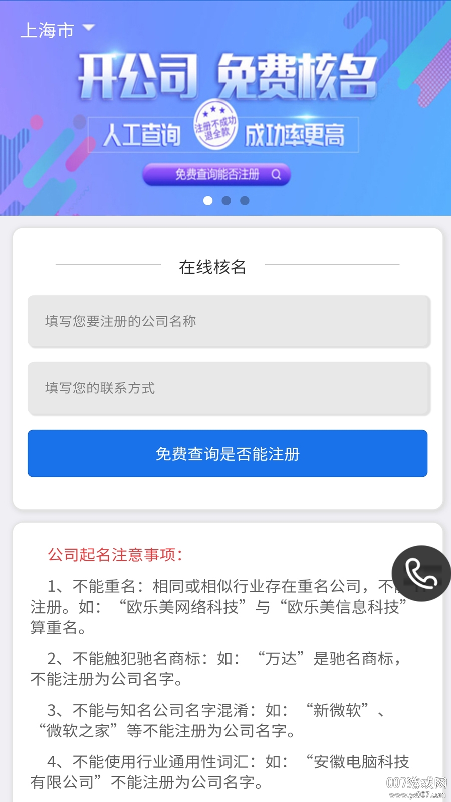 网上免费在线注册app是一款专为企业注册打造的智能服务平台,覆盖全国范围,提供高效便捷的公司注册与代理记账服务。通过智能AI技术与专业客服团队的支持,用户可快速完成核名、资料提交、执照申请等全流程操作,最快当天即可拥有合法经营资质。平台整合2300万+企业名称数据库,实时更新政策法规,确保注册流程合规高效,让创业者足不出户轻松开公司。