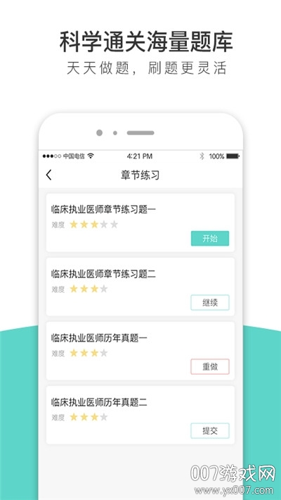 执业医师全题库专业版是一款集专业性、智能性和便捷性于一体的备考软件。它不仅汇集了最全面的医学知识内容和海量题库资源,还能根据用户的学习进度智能调整练习内容。通过科学的章节分类和系统的学习计划,帮助考生轻松掌握考试重点。平台支持随时随地的学习模式,配合丰富的视频课程资源,让备考过程更加灵活高效。无论是零基础的考生还是需要强化训练的医学专业人士,都能在这里找到适合自己的学习方式,顺利通过执业医师资格考试。