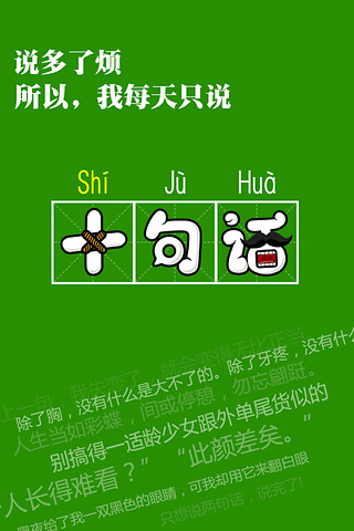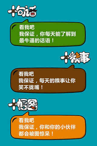 这10条内容可不简单!包含10句妙语连珠的话,10幅让人捧腹的图,10件令人忍俊不禁的糗事。阅读它们,就相当于同时浏览了人人网、天涯论坛、猫扑社区和微博上最新最热的精华内容。每天只需要花费你宝贵的两分钟时间,就能收获满满的快乐,保证让你欲罢不能,天天都想来看!
