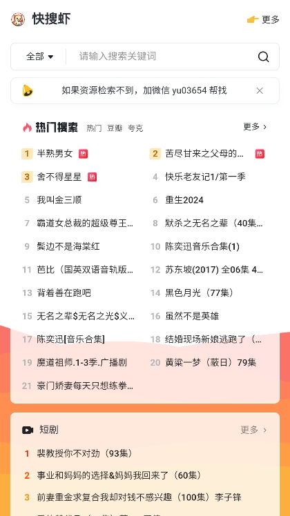无论您是寻找学习资料、娱乐资源还是工作文档,快搜虾app都能为您提供专业可靠的搜索服务。现在就下载体验,开启高效便捷的资源搜索之旅吧!