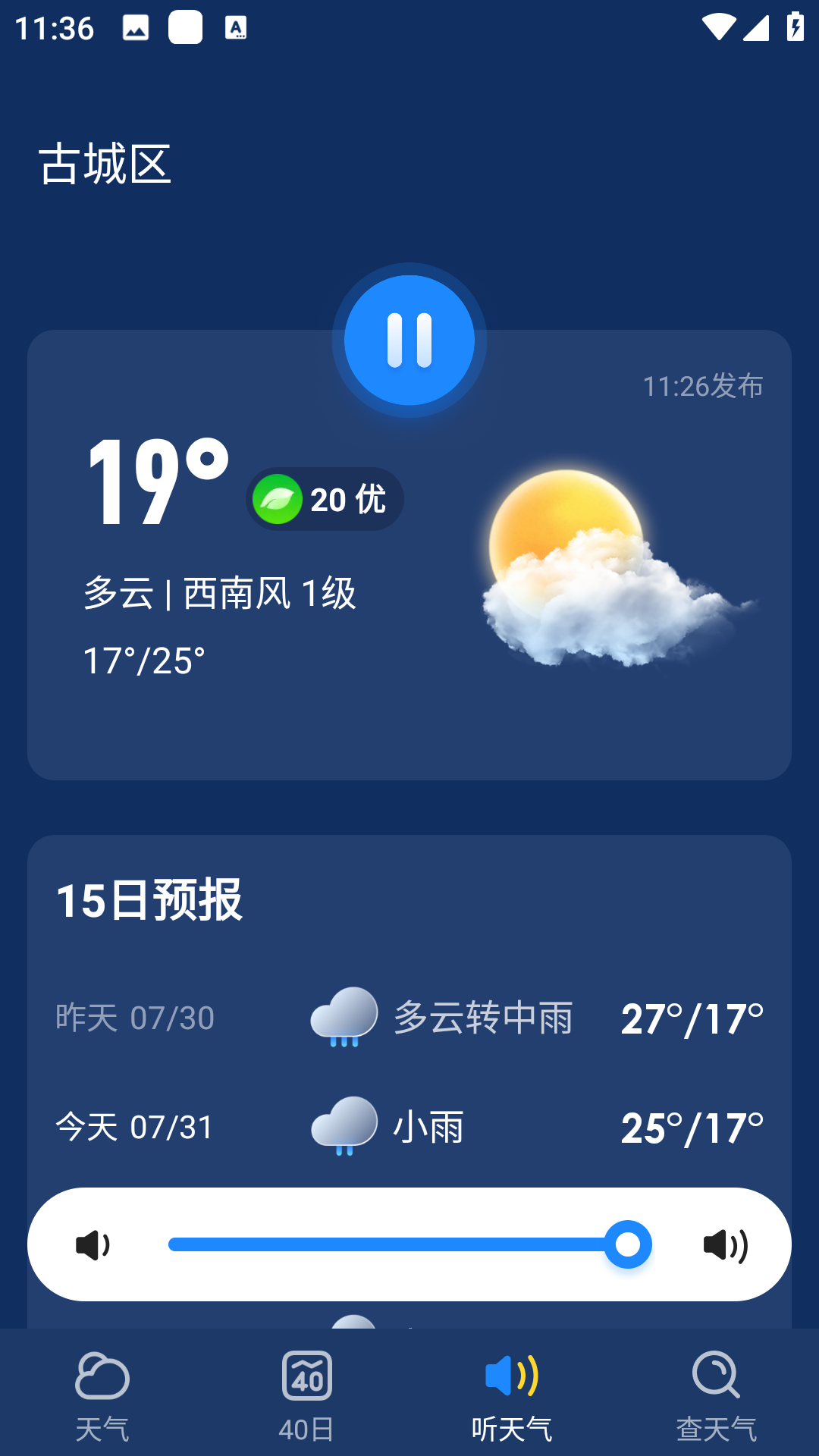 使用极光天气app收听天气预报非常简单便捷。首先下载并安装应用后,系统会智能识别您当前所在位置,同时您也可以手动添加多个关注城市。进入主界面后,点击右上角的"喇叭"图标即可切换到语音天气播报模式。在这个界面,您只需轻触播放按钮,就能听到清晰流畅的天气播报内容,包括当前温度、湿度、风速等详细信息,让您无需盯着屏幕也能随时掌握天气变化。