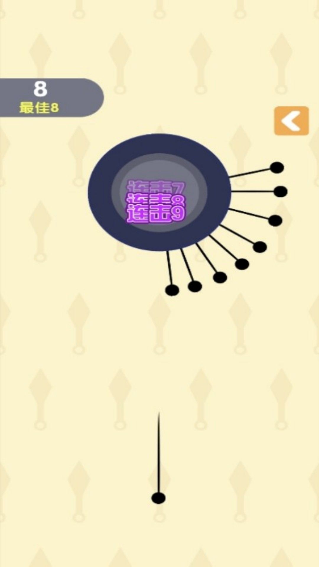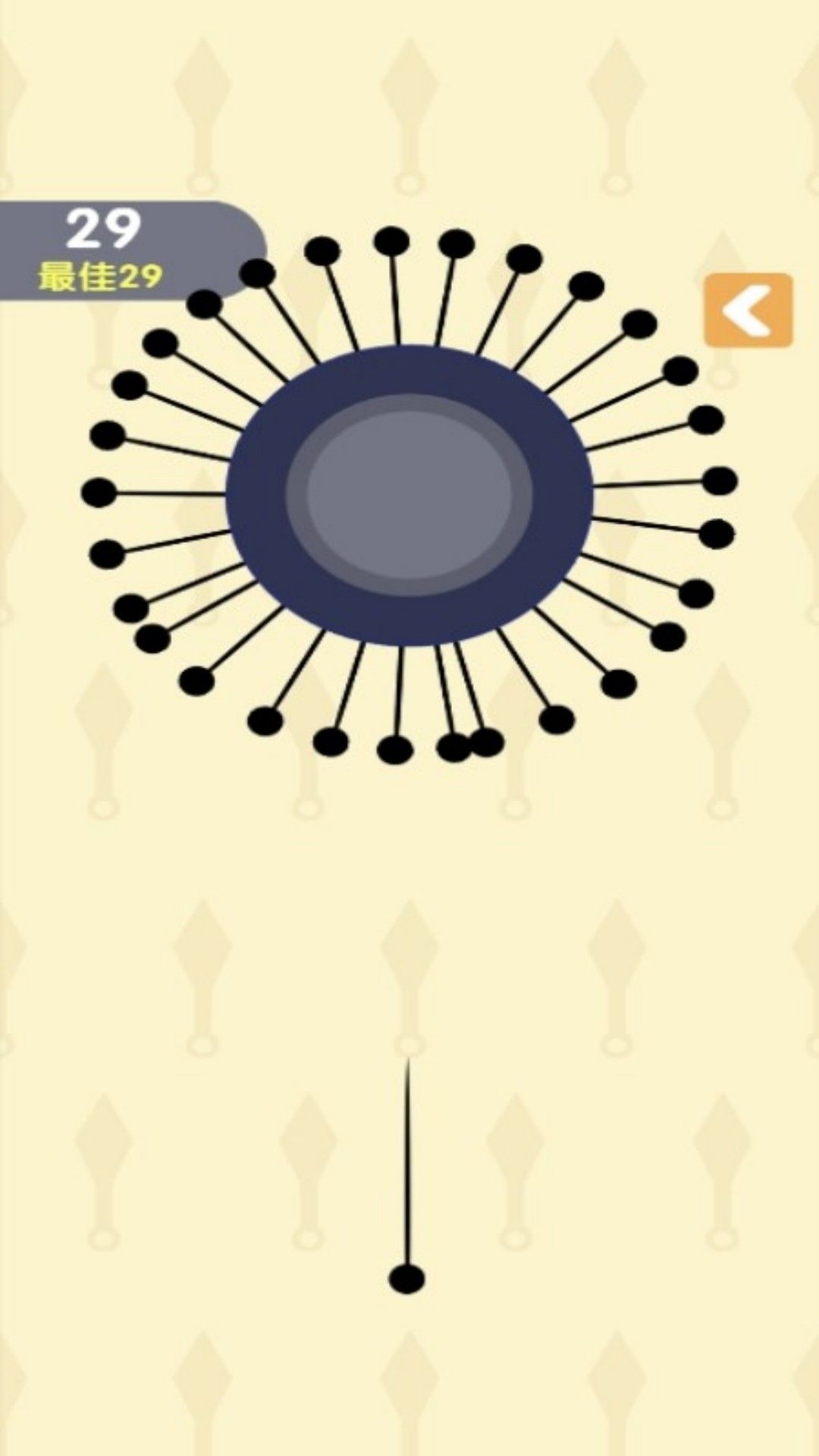 游戏采用简约而不简单的卡通画面设计,米白色背景与黑白色旋转球体形成鲜明对比,带来舒适的视觉体验。精心设计的背景音乐节奏舒缓,能让玩家在紧张的游戏过程中保持放松状态,更好地沉浸其中。游戏还融入了多种难度递增机制,包括针的数量变化、圆盘旋转方向切换以及速度调整等,确保游戏体验既富有挑战性又不会过于单调。