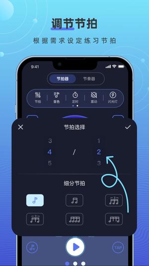 本次更新新增了节拍细分功能,支持将每个节拍细分为2-16等份,满足复杂节奏训练需求。优化了用户界面交互逻辑,使操作更加流畅自然。修复了部分设备上的音频延迟问题,提升了节拍精准度。新增了5种专业音色,包括电子鼓组和交响打击乐。同时改进了节拍可视化显示,让节奏变化更加直观可见。