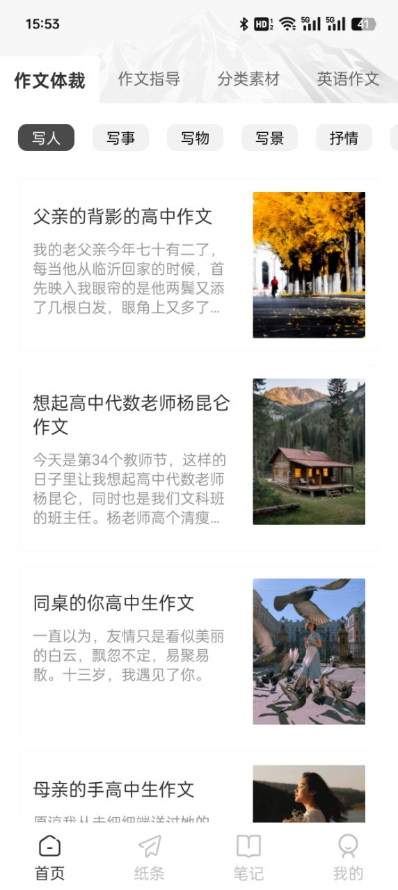光速作文app拥有业内最全面的作文资源库,收录超过10万篇优质范文。内容涵盖记叙文、说明文、议论文、应用文等所有常见文体,以及写人、记事、状物、游记等各种主题。每篇范文都经过严格筛选,确保质量上乘。特别值得一提的是,软件还收录了大量中高考满分作文和竞赛获奖作品,配有专家点评解析。此外,软件还提供写作技巧专栏、文学常识库和经典名著选段等拓展资源,全方位提升用户的文学素养。