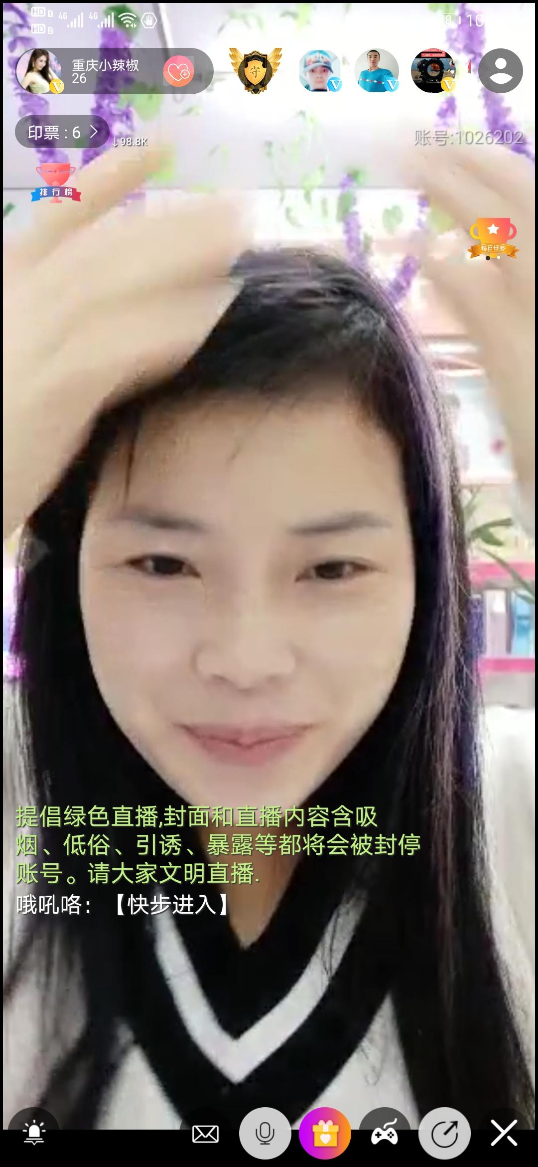 【才艺主播限时活动】平台汇聚各类优质主播,从清纯校花到霸气御姐,总有一款适合你。24小时不间断的直播内容,激烈的PK排名赛,丰富多彩的限时活动,让你可以守护心仪的主播,登上荣誉榜单。