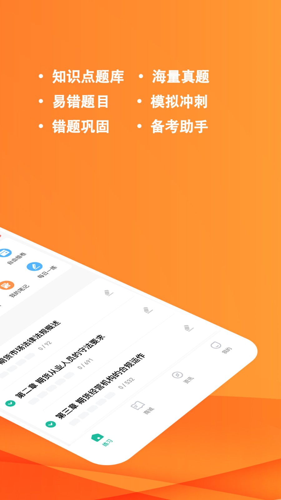 期货从业练题狗APP是一款专为期货从业资格考试备考者打造的高效学习工具。该平台汇聚了海量优质题库资源,涵盖历年真题、高频考点及权威模拟试题,帮助用户通过科学刷题快速提升应试能力。系统提供智能错题本功能,可自动记录练习过程中的易错题目,并支持多维度学习数据分析,让用户清晰掌握自身薄弱环节。此外,平台还设有全真模拟考试系统,高度还原真实考场环境,有效提升考生的临场发挥能力。