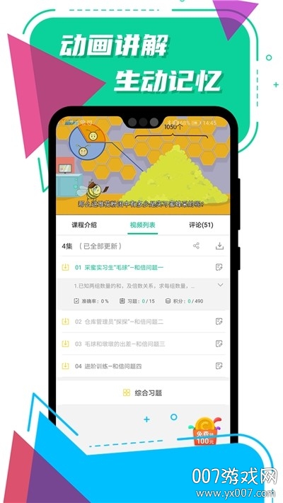 采用全景式的教学方法,10~15分钟一堂课,兼具练习与测试功能,根据学生的学习轨迹生成档案,方便学生针对性的查漏补缺,巩固基础知识。每节课后都有即时测评,系统会记录学习数据,生成可视化报告,让家长和老师随时了解学习进度。