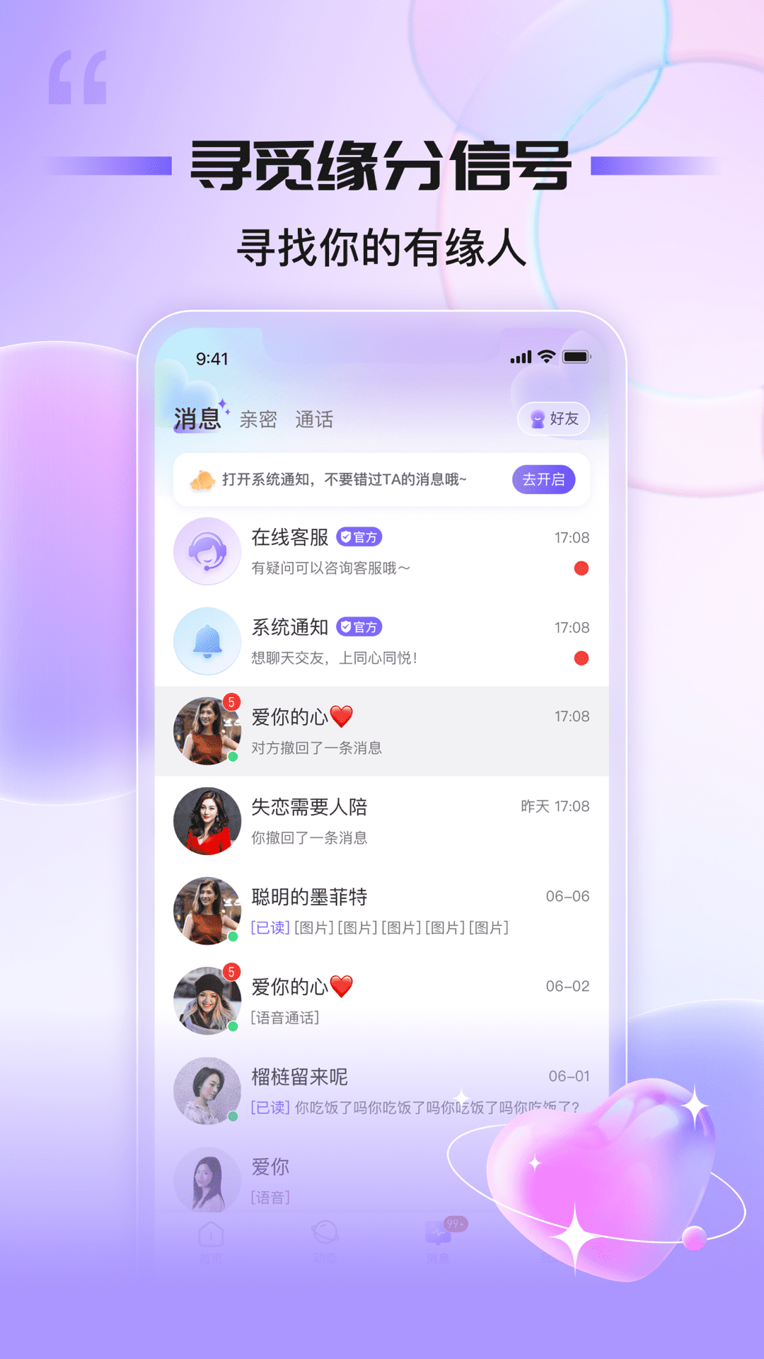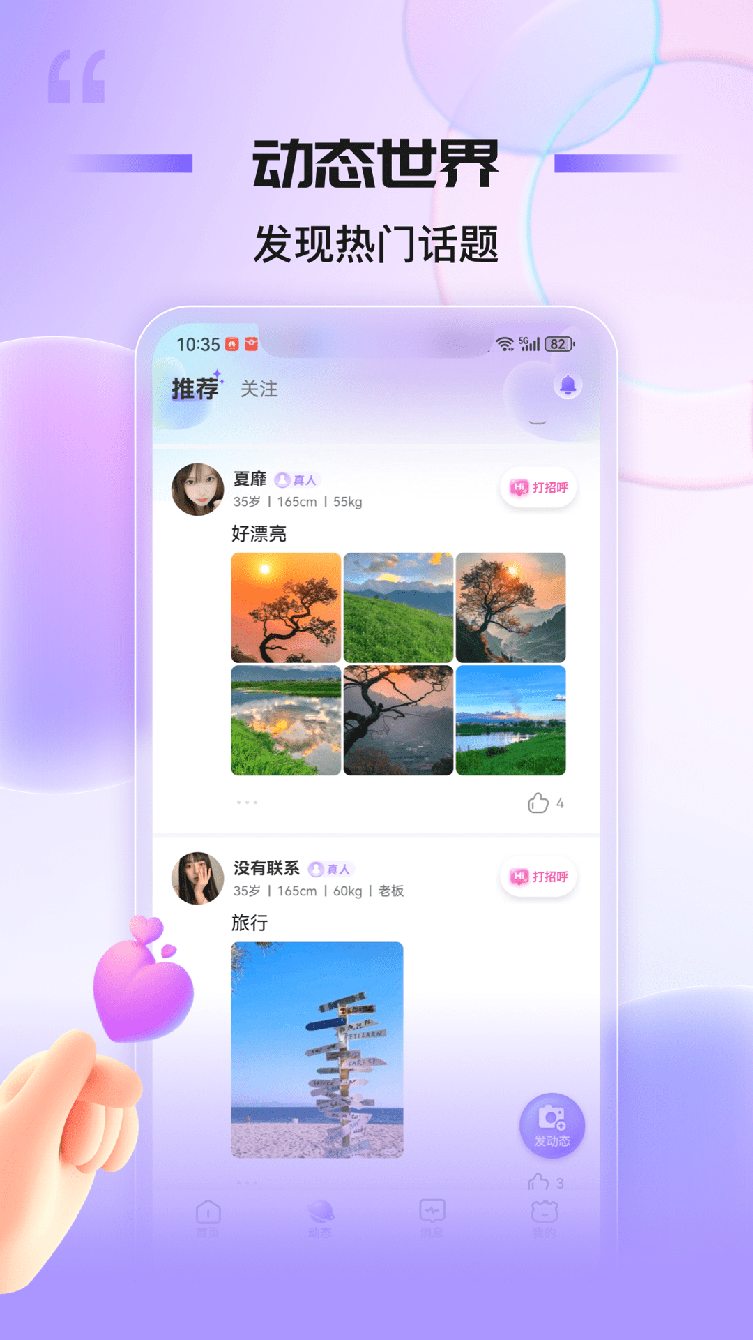 搭对交友app是一款正规可靠的真人线上交友平台,采用创新的社交模式和智能算法匹配,为用户带来甜蜜愉悦的交友体验。平台提供多样化的玩法模式,包括兴趣匹配、附近的人、语音聊天、视频互动等,让你随时随地都能享受社交的乐趣。在这里,你可以发布个人动态,参与热门话题讨论,通过丰富的互动方式深入了解心仪对象。搭对致力于打造一个安全、真实的交友环境,帮助单身用户找到志趣相投的另一半。平台还定期举办线上活动,为用户创造更多相识相知的机会。
