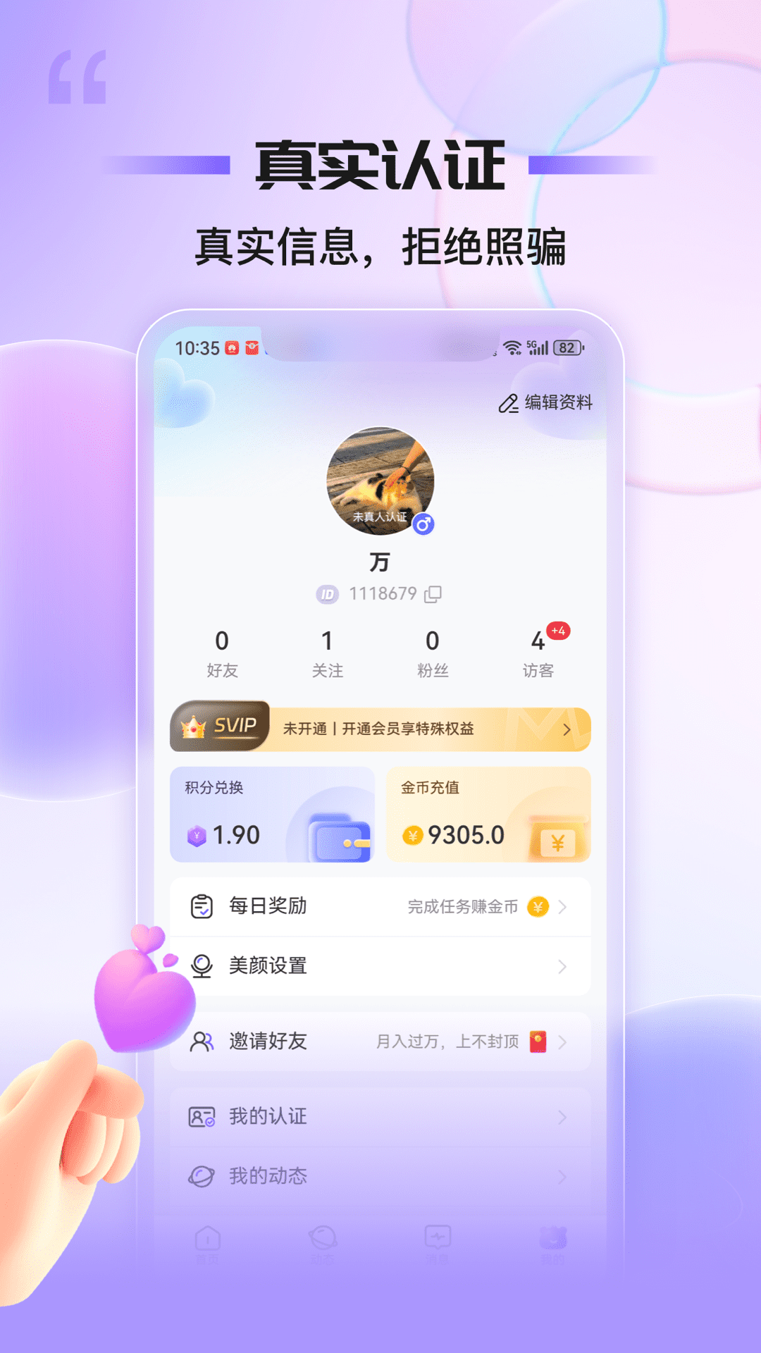 搭对(com.dadui.wanling)是一款专为单身人士设计的创新交友软件,致力于帮助用户快速结识优质异性朋友。在这个平台上,你可以轻松遇到众多颜值与内涵并存的小姐姐和帅气阳光的小哥哥,开启一段美好的社交之旅。软件提供丰富多样的脱单内容和便捷高效的交友功能,从智能匹配到兴趣社群,从动态分享到即时聊天,全方位满足你的社交需求。无论你是渴望脱单,还是希望拓展社交圈,搭对都能为你提供理想的解决方案。平台采用严格的实名认证机制,确保每位用户的真实性,让你可以放心交友。现在就加入搭对,开启你的浪漫邂逅吧!