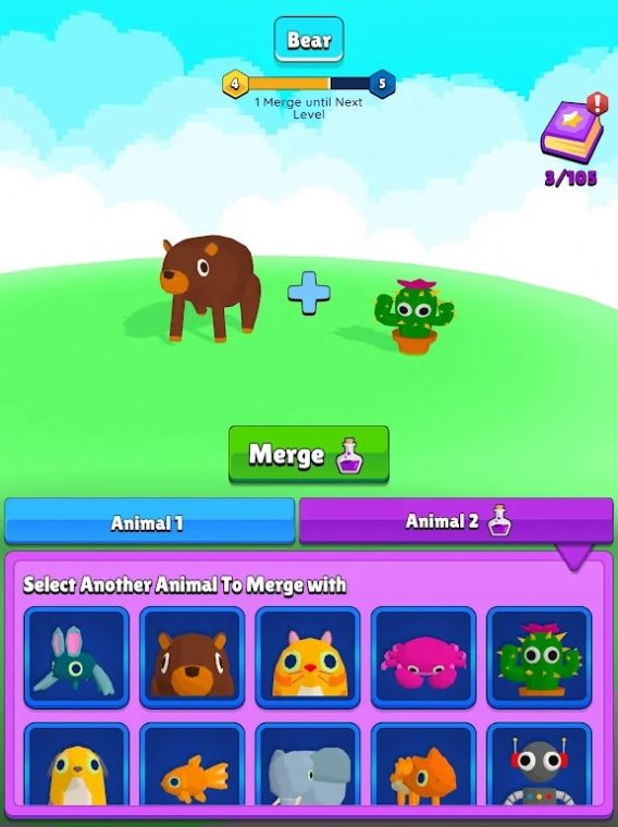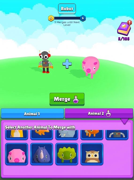 《AI动物合并》是一款充满创意与惊喜的休闲模拟养成手游,玩家将化身为一名动物合成研究员,利用前沿的人工智能技术,将不同物种的动物进行基因融合,创造出独一无二的全新生物。游戏中的AI系统会智能分析原始动物的特征,为玩家生成意想不到的合成结果。从威武的狮虎兽到呆萌的熊猫兔,每一次合成都能带来视觉与玩法上的双重惊喜。游戏采用轻松愉快的养成模式,让玩家在探索生物多样性的同时,体验培育新物种的成就感。