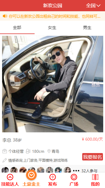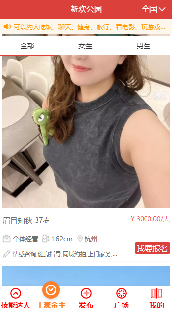 新欢公园官网https://www.weixin68.com/h5/#/是一个专为单身人士打造的社交平台,在这里你可以快速找到心仪的男友或女友,甚至还能体验独特的"出租"功能!平台功能丰富多样,吸引了大量活跃用户,每天都有无数小伙伴在这里寻找缘分。如果你也想开启一段浪漫邂逅,记得来007本栏目下载新欢公园app!这款应用操作简单,界面友好,绝对是单身人士的必备神器。