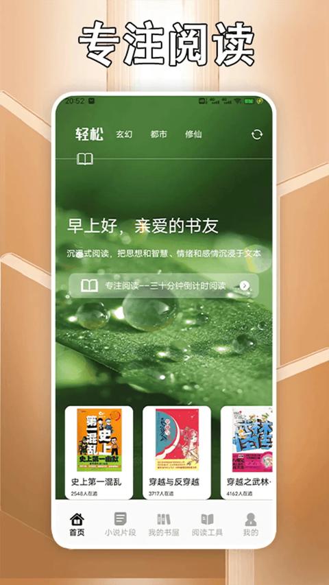 ・沉浸式阅读,把思想和智慧、情绪和感情沉浸于文本;开启专注模式后,系统将自动屏蔽消息提醒,打造零干扰阅读空间。