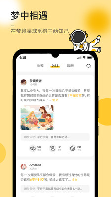 享受到最优质的梦境社交服务手机软件,在这里可以更好的在线分享不同的梦境信息,而且还可以随时和不同的网友进行交流,享受到最佳的交友互动服务,针对最全的社交体验更知晓,平台还会定期举办线上梦境分享会,邀请心理学专家进行专业解读。