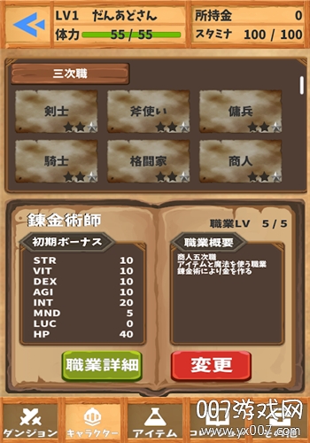 不习惯的玩家可以先从战士转职成来获得高到不会死的防御力、如果对自己的有自信的话也推荐选择商人系