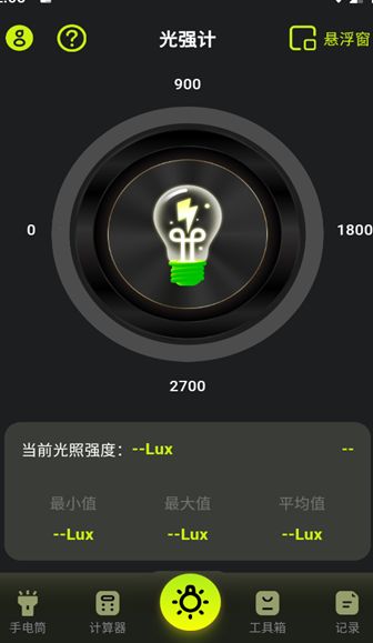 光强LM照度计app集成了多种实用工具,为用户提供全方位的测量体验。除了高精度的光照测量功能外,APP还内置了水平仪、计算器、手电筒等实用工具,用户可以随时根据需求在线使用。通过内置的高精度传感器,APP能够实时测量当前的光照强度,并以Lux(勒克斯)为单位显示。同时,APP还能自动记录测量过程中的最小值、最大值和平均值,方便用户进行数据分析。这些功能的设计充分考虑了用户的实际需求,使测量工作变得更加简单高效。