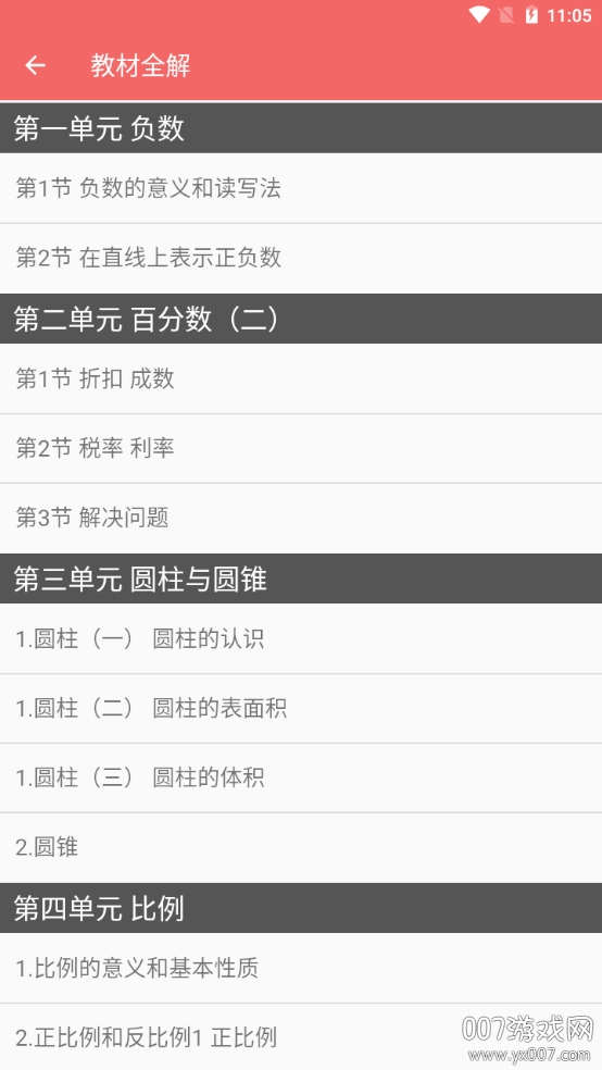 打开应用后,学生可以直观地浏览教材目录,快速定位需要学习的内容模块。