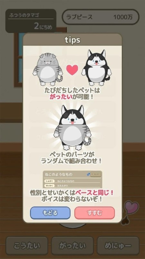 首先需要接受权限请求,点击"同意"按钮允许游戏访问必要的存储和麦克风权限,这样才能顺利开启你的奇幻宠物之旅。游戏会贴心地引导你完成这些基础设置。接着点击"TapScreen"按钮进入主界面,这里会有一只可爱的引导猫咪迎接你的到来。在猫咪选择界面,你可以浏览所有初始可选的宠物,点击"決定"按钮确认选择后,就能正式开始你的饲养员生活了。系统会提供详细的新手教程,帮助你快速掌握基本操作。
